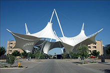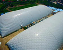 1、 獨特的無梁柱設計:由于是氣壓承載,氣承膜結構內并無梁柱。 空間高跨比為1/4~1/2。 2、力學性能:中等強度的PVC膜,其厚度僅1.0mm,但它的拉伸強...